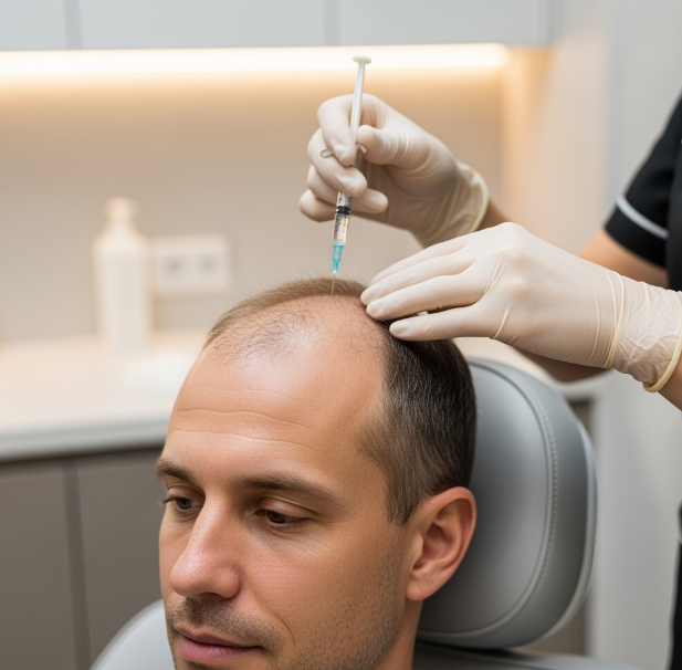 Microinyecciones aplicadas en el cuero cabelludo con un cóctel de vitaminas, aminoácidos y factores de crecimiento que fortalecen el cabello y estimulan el folículo piloso.